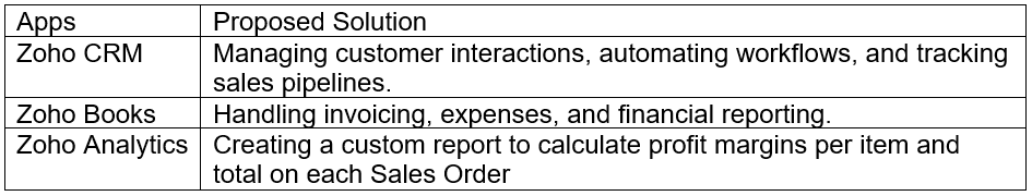 - Developed a custom report in Zoho Analytics to show item-wise and total profit margins on Sales Orders.